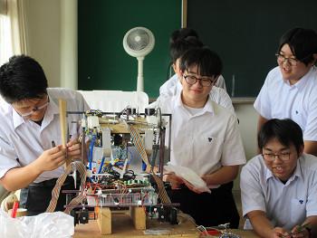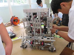 ロボット研究部は、高等学校ロボット競技大会の全国大会入賞をメインの目標にして活動しています。ほかにも文化祭で展示と同時に模擬店を出したり、依頼されたものを製作・修理したり、自主的活動として普段の生活を快適にするためのものづくりをしたりしています。