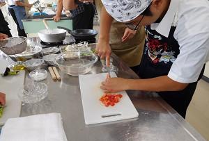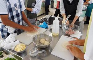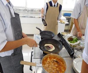 実習する前の生徒達の自炊のイメージは、「料理は難しそう、大変」、「一人で作るのは無理」、「包丁が怖い」、「作れたらいいと思うが、大変そう」などでしたが、出来上がって食べてみた感想は、「自分は好き嫌いが多いが、今回の料理は全部おいしく食べることが出来た」、「生地を丸くするのが大変だったが、おいしくできた」、「簡単な食材ですぐできるので、家でも作ってみたい」などの感想が多く、とても充実した料理教室になりました。