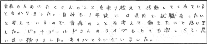 6校時は有限会社リンゴミュージック所属 ジョナゴールド氏によるライブを鑑賞しました。